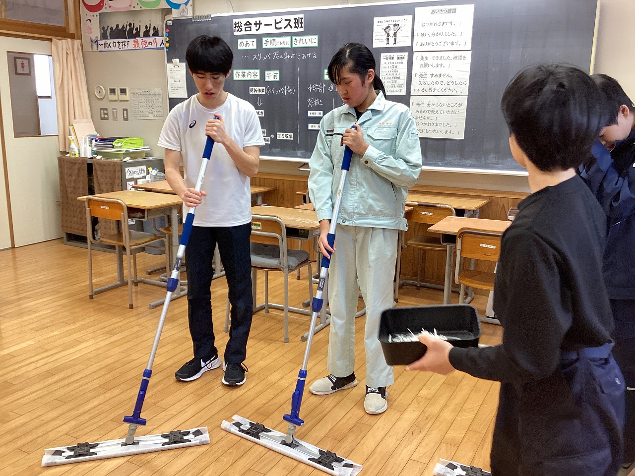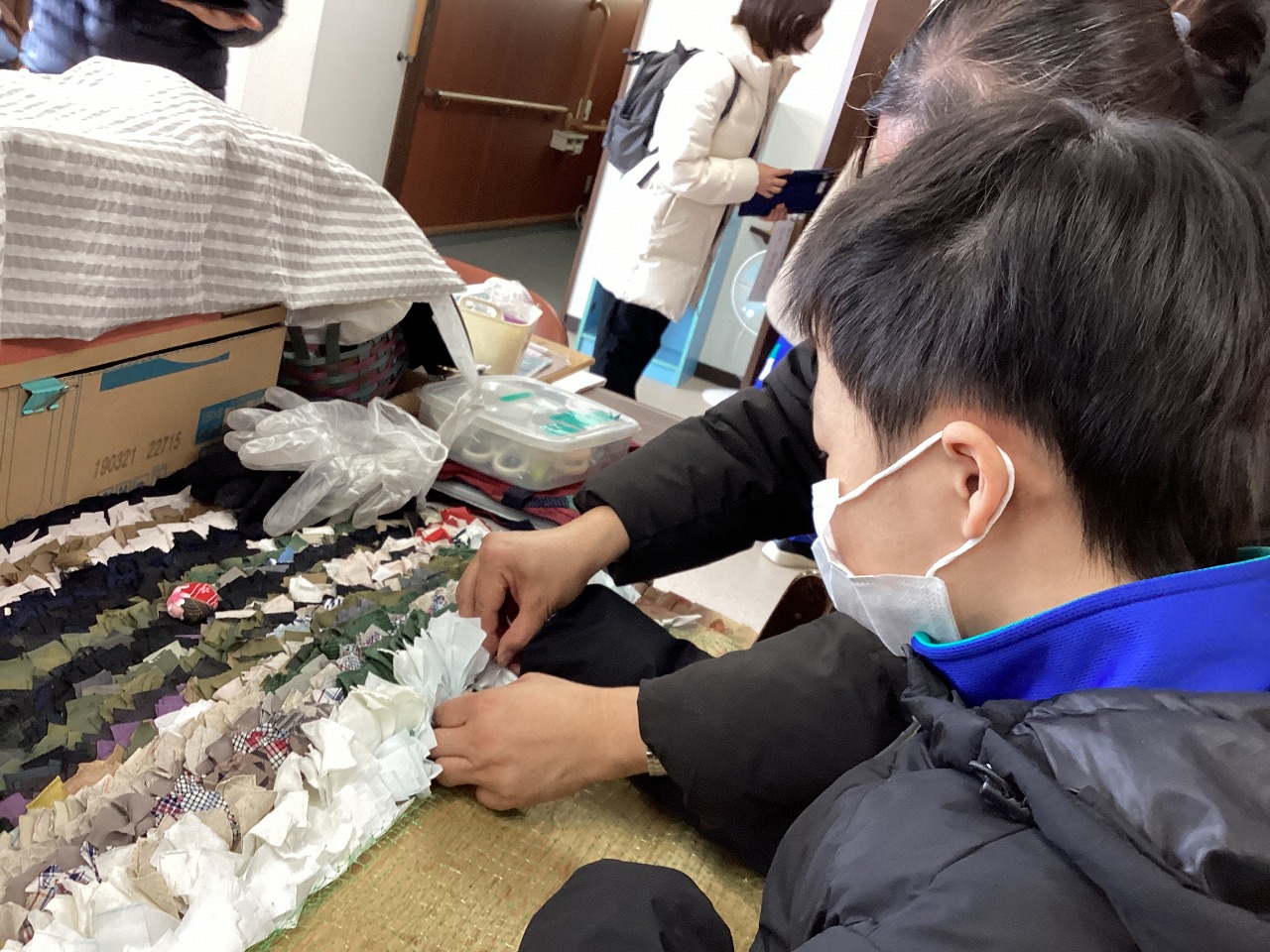 | 障害者就労支援事業所どじょっこハウスに職場見学へ行きました。施設の説明を聞き、縫製、清掃、農作業(除雪)の作業を体験しました。 |