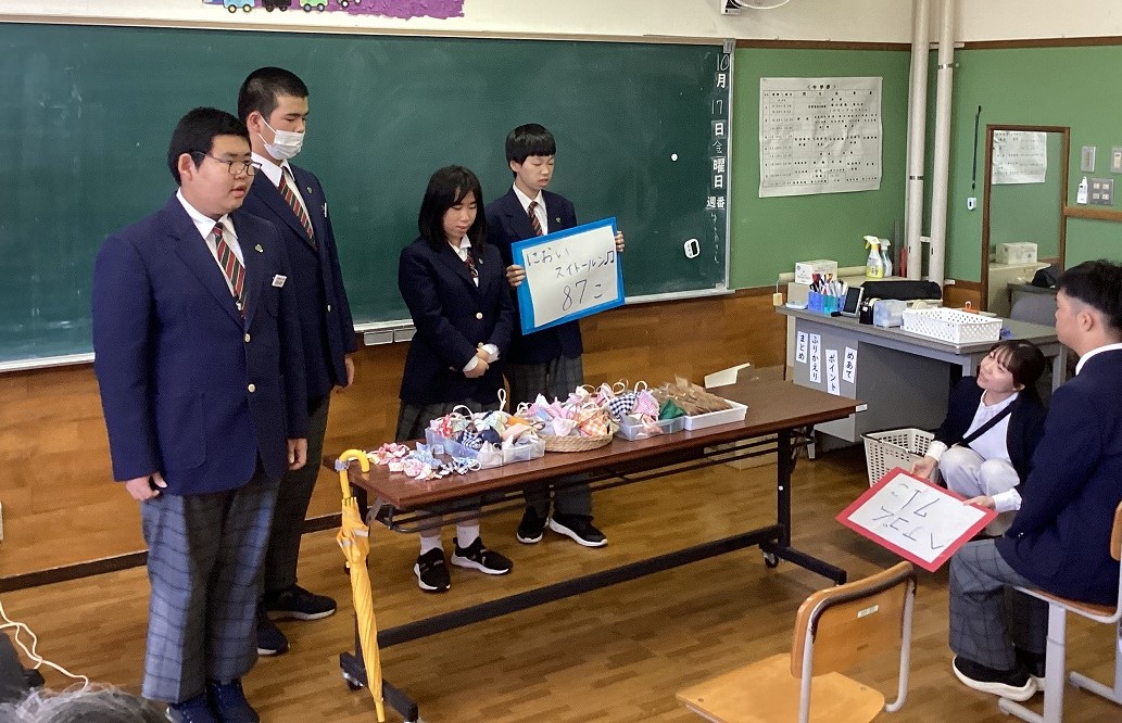| 8日間の後期校内実習を終え、報告会を行いました。エコ班、縫製班の出来高報告や一人一人の成果と反省を発表しました。この実習での学びを生かし、今後の作業学習に取り組んでいきます。 |