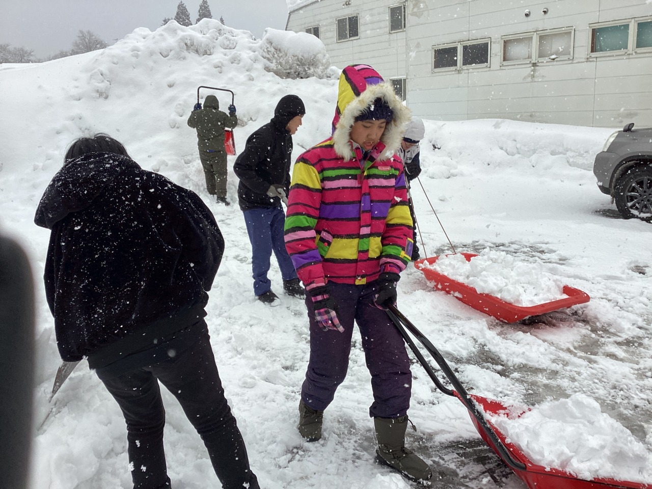 | 秋田内陸縦貫鉄道の阿仁合駅へ校外学習に行きました。午前中は、内陸線資料館の見学、午後からは阿仁合駅の清掃と除雪活動に取り組みました。 |