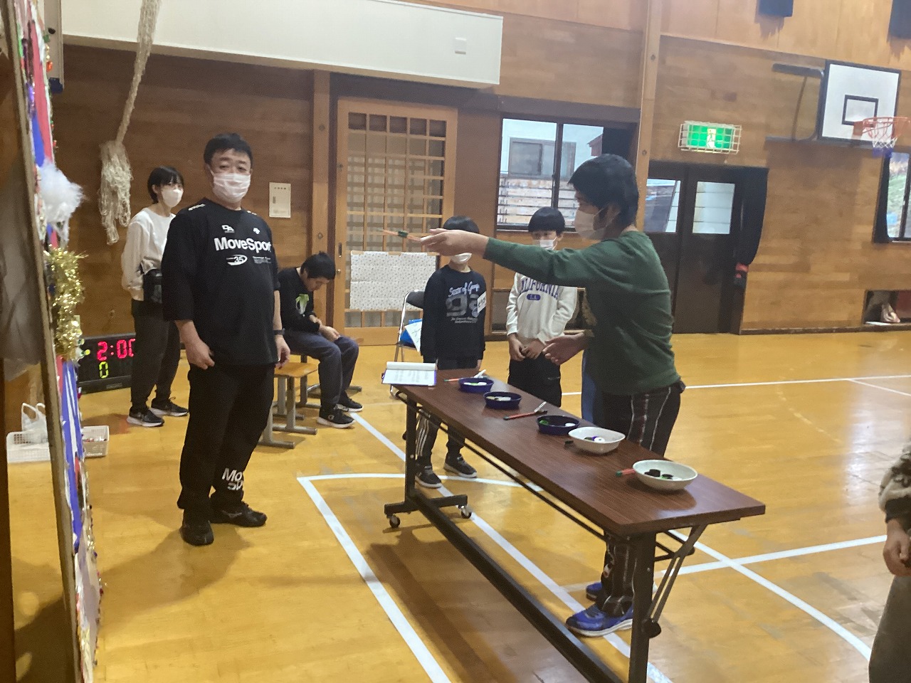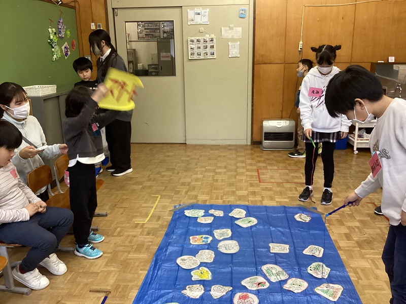 | 北秋田市読み聞かせボランティア「たまてばこ」さんをお招きし、小学部の「わいわい おたのしみかい」を行いました。各学級の発表やたまてばこさんの読み聞かせでとても盛り上がっていました。1・2年生はピン倒し、3・4・5年生は玉入れ、6年生はシューティングゲームを行い、時間いっぱい楽しみました。 |