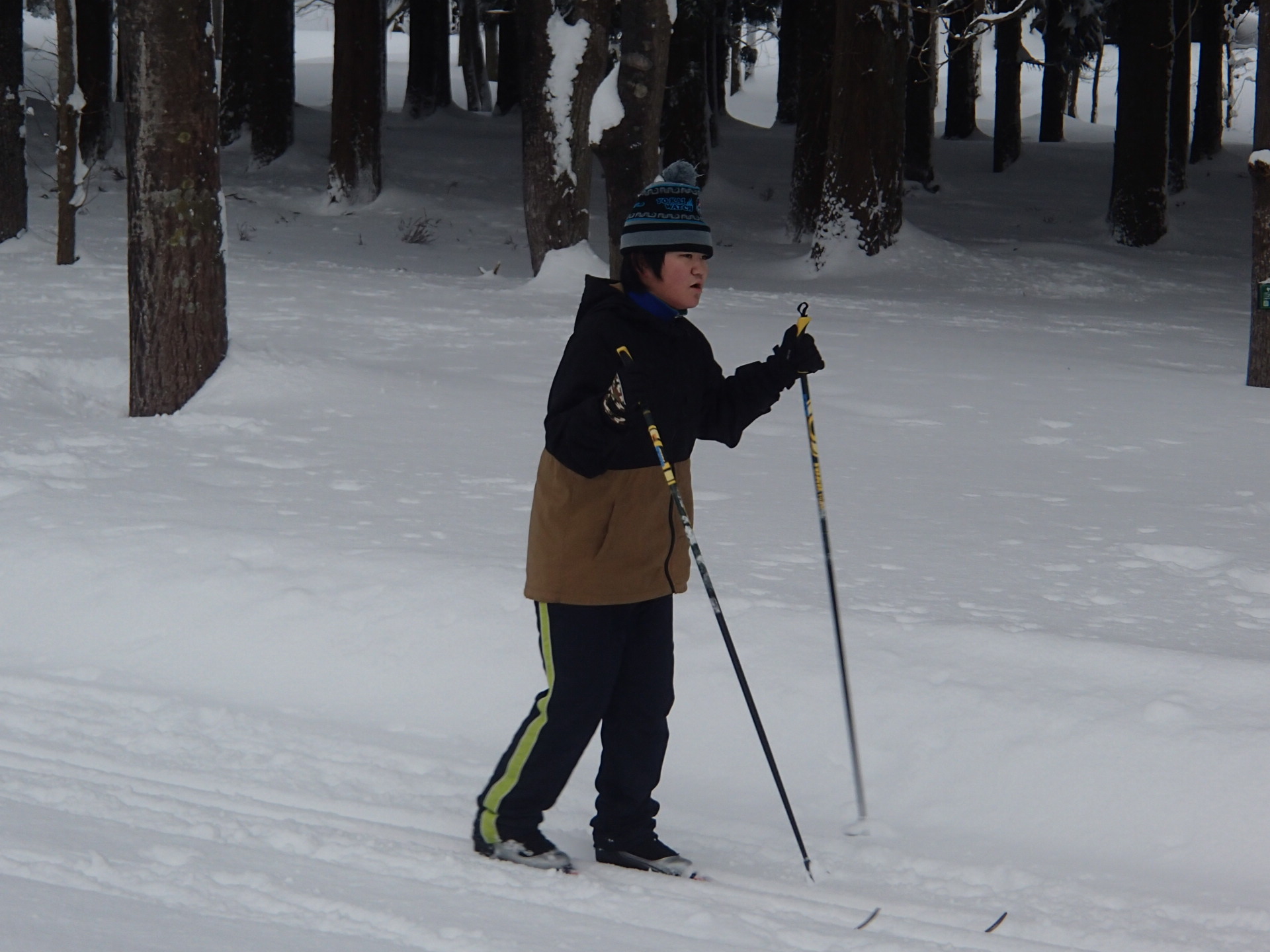 北欧の杜公園でスキー教室を行いました。大コース、小コースに分かれて、スキーを滑らせながらたくさん歩くことができました。今年度も地域の先生の梅井先生と一緒にスキーを楽しみました。