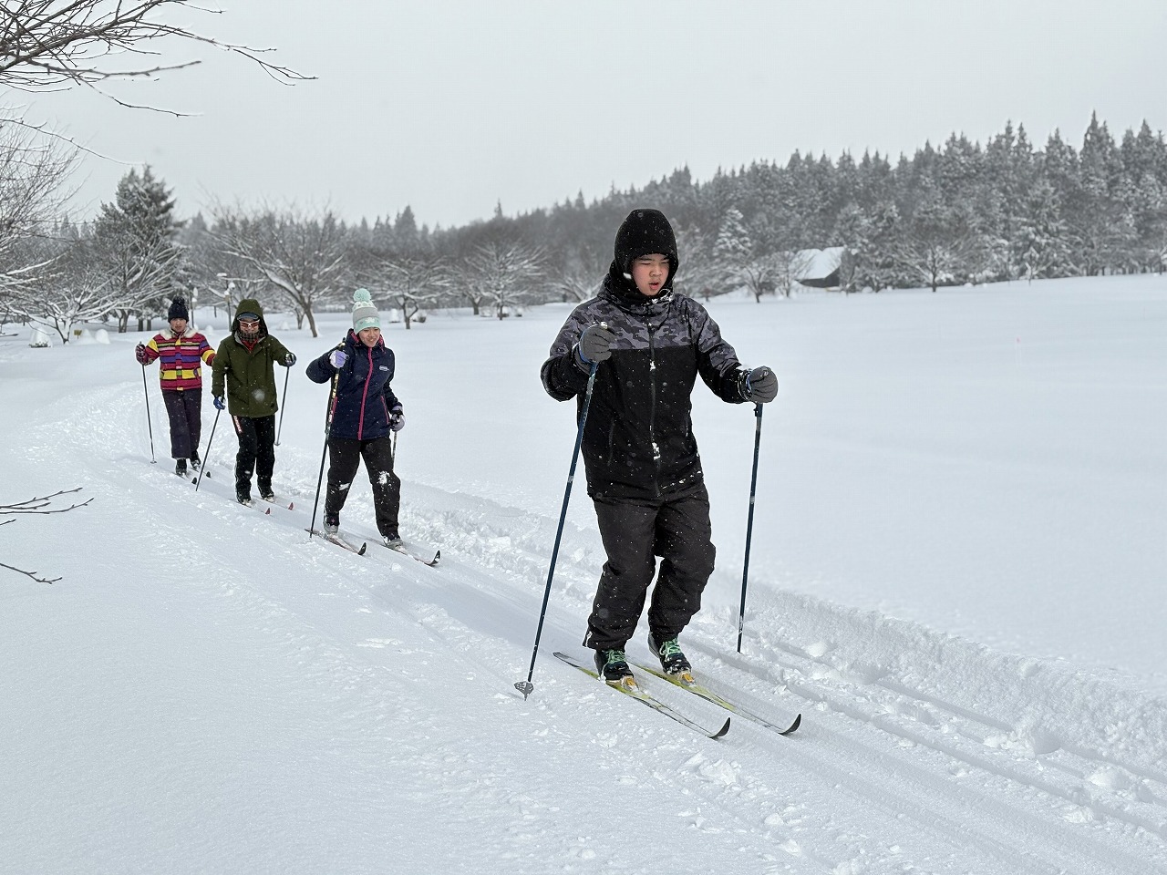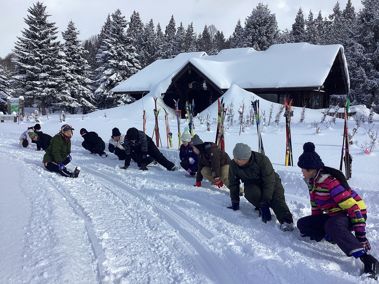 | 北欧の杜公園でスキー教室を2回実施しました。両日とも、地域の先生の梅井さんから丁寧な指導をしていただきました。天候が少し悪くなる場面もありましたが、寒さに負けず体をたくさん動かしました。 |