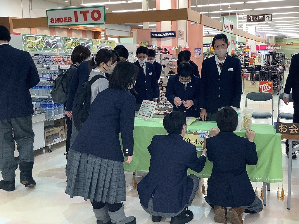 | いとく鷹巣ショッピングセンターで販売会を行いました。10:15~11:15の1時間、自分たちが作った製品を販売しました。経験したことのない役割に挑戦し、レジ打ちや袋詰め、商品説明など緊張しながらも頑張りました。 |