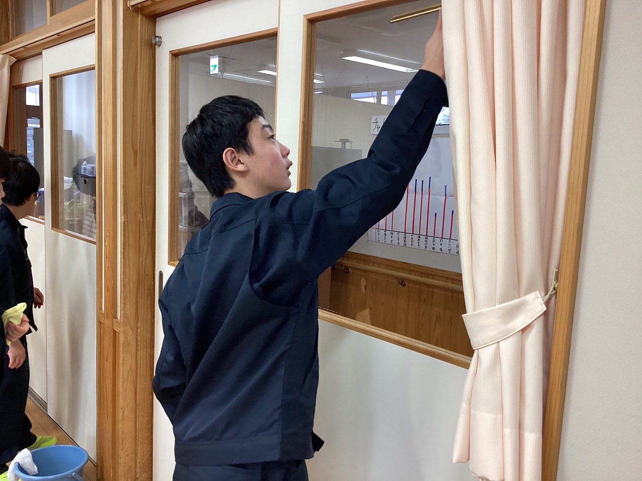 | みんなのためにプロジェクトの一環で、「米内沢駅」と「もりよし荘」の清掃活動に行きました。利用者の方に喜んでもらうために、清掃や草むしりに真剣に取り組みました。 |