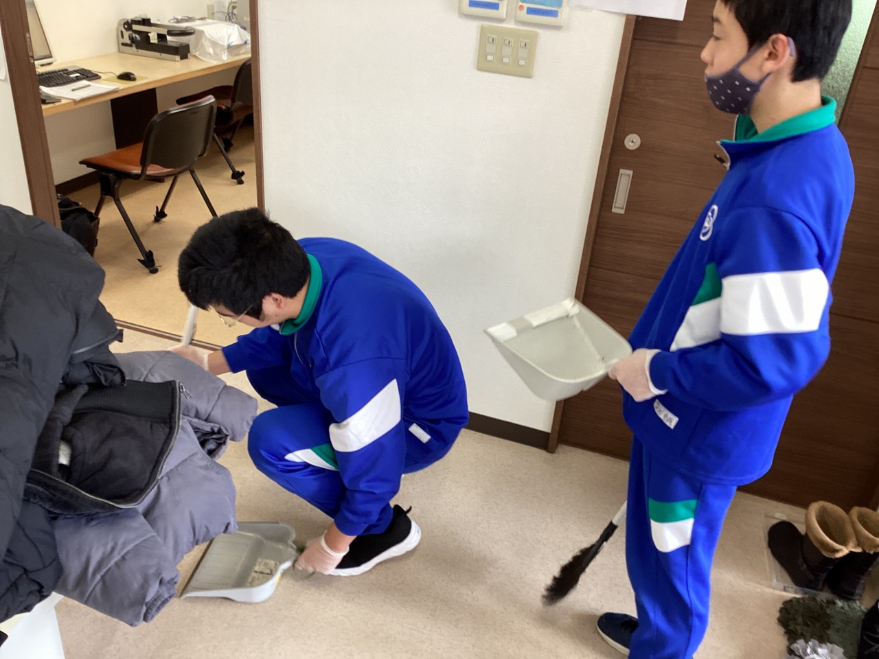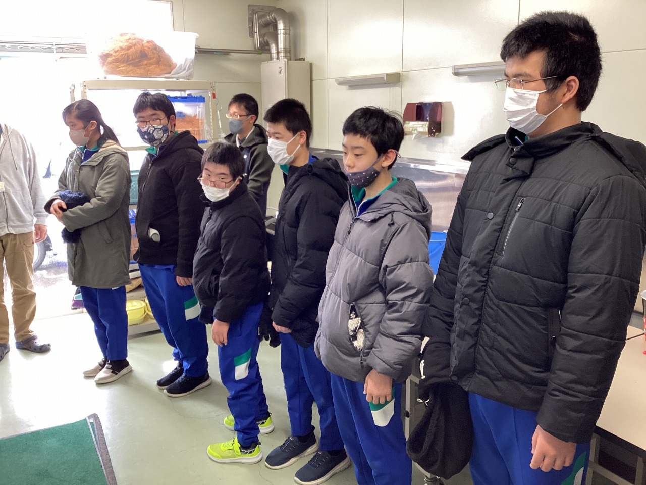 | 障害者就労支援事業所どじょっこハウスに職場見学へ行きました。施設の説明を聞き、縫製、清掃、農作業(除雪)の作業を体験しました。 |