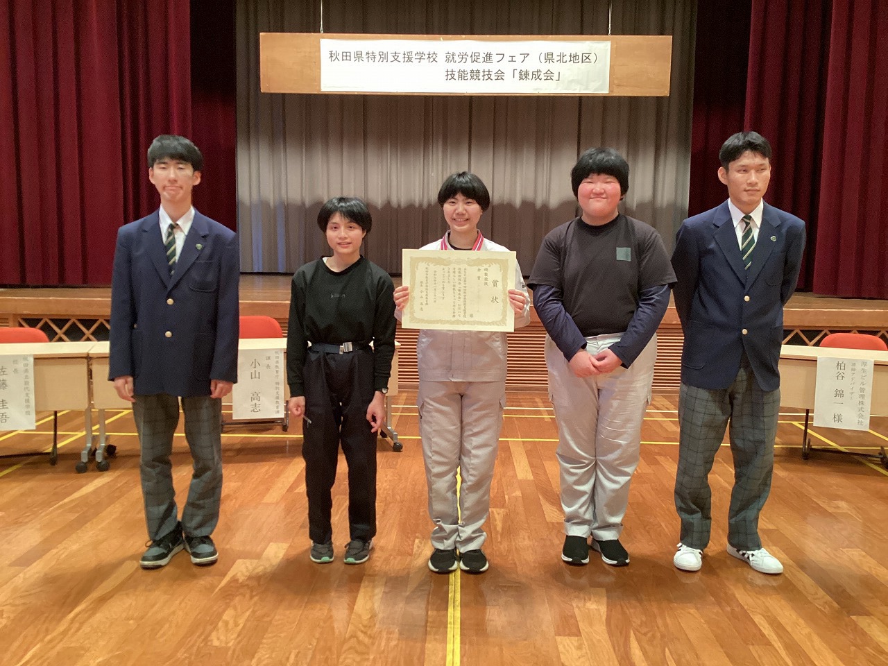 | アビリンピック秋田2025に参加し、ワード・プロセッサ部門とビルクリーニング部門に一名ずつ出場しました。ワードプロセッサ部門では、これまでの練習の成果を発揮し、金賞を受賞しました。ビルクリーニング部門は、入賞とはなりませんでしたが、「これまでで一番うまくできた。入賞はできなかったけど、悔いの残らない本番だった。」と達成感を得ていました。 |