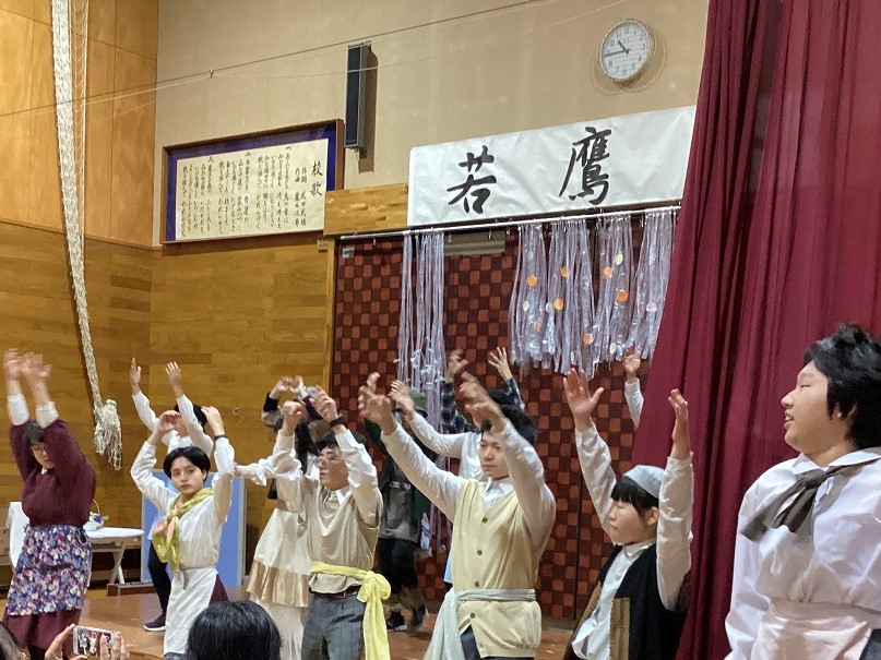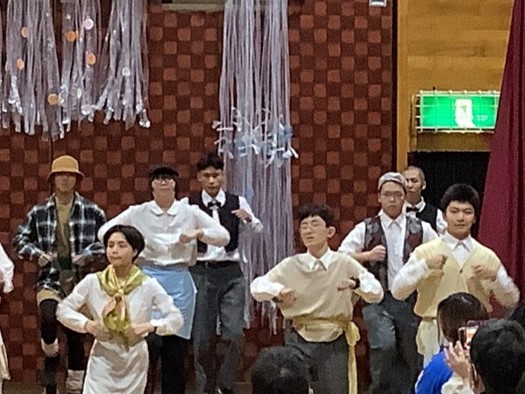 | ミュージカル「お姫様の耳はロバの耳」では、秘密を抱える苦しさ、人のうわさの怖さ、ありのままの自分をを受け入れる勇気を高等部全員、歌とダンスで表現しました。 |