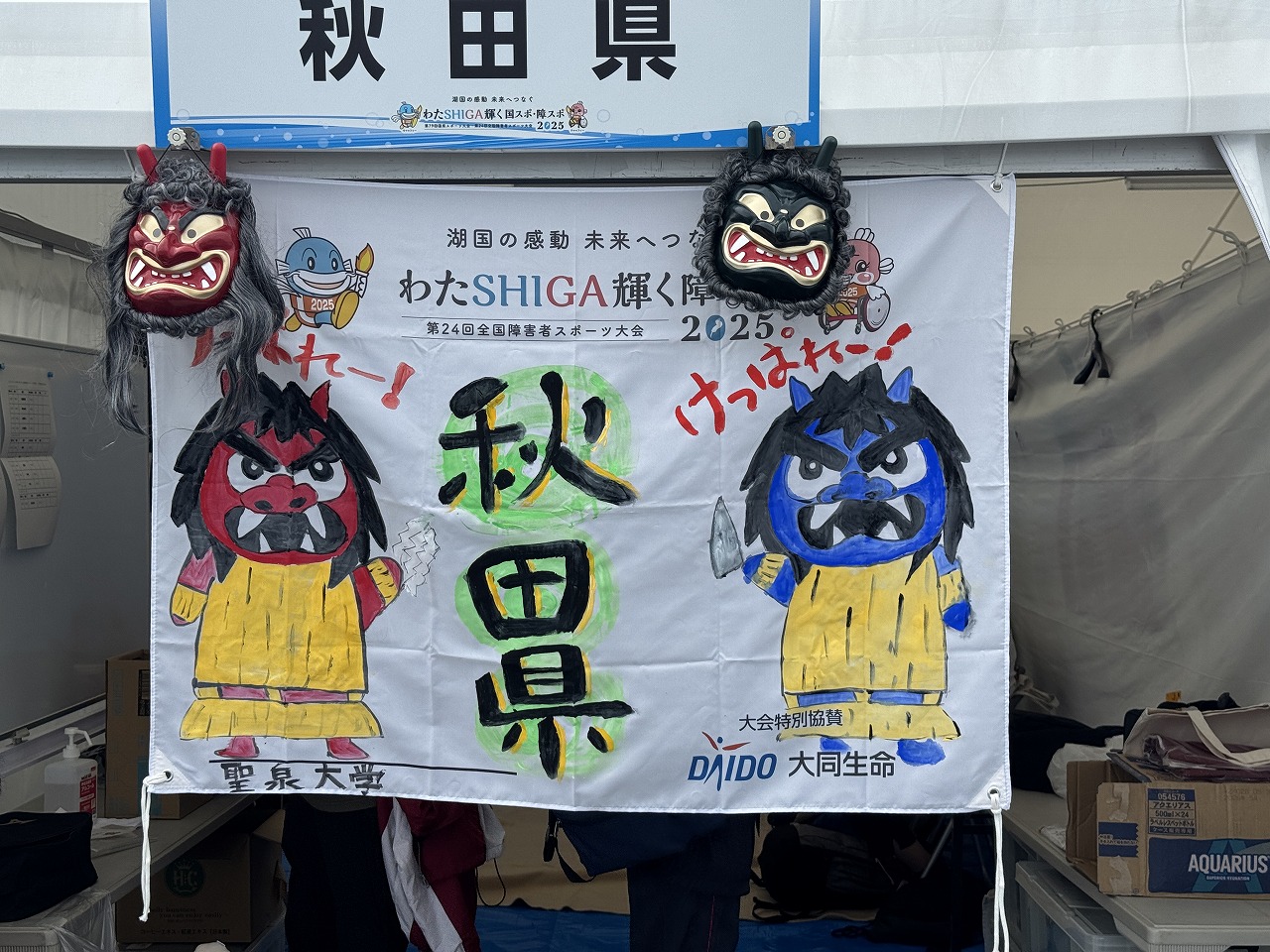 | 10月25日~27日に行われた「わたSHIGA輝く障スポ2025」に高等部2年生男子12名が秋田県代表として参加し、100mと200mに出場しました。雨の中でのレースでしたが、どちらの種目でも自己ベストを出しました。「あっという間の大会だった。全国から集まった代表の選手と走れて楽しかった。」感想を話し、思い出に残る経験になりました。 |