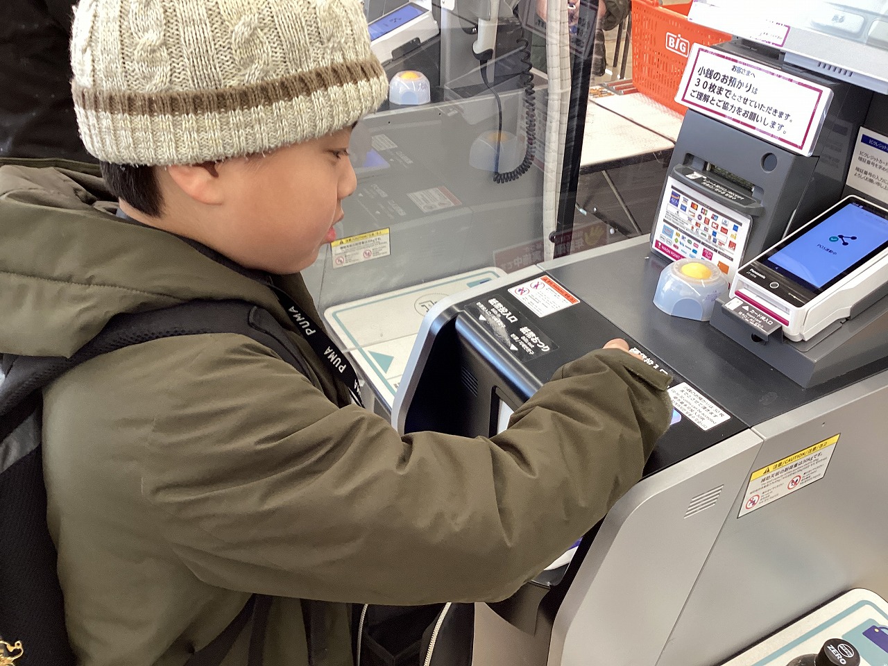 校外学習でセリアとザ・ビッグに行きました。セリアでは、6年生を送る会のプレゼントに使う材料を買いました。ザ・ビッグでは、それぞれ好きなジュースを選んで買いました。きまりを守って安全に楽しく買い物をしました。